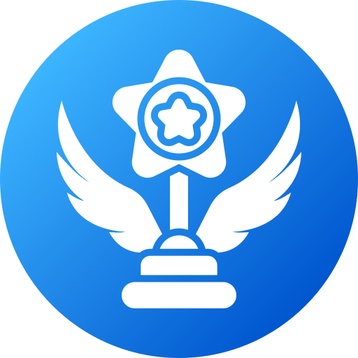 Icon of a trophy with wings and a star inside a circle on top of a pedestal.